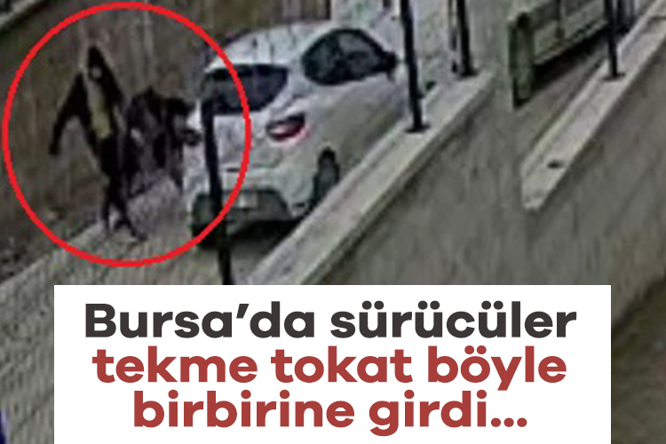 Bursa'nın İnegöl ilçesinde servis şoförü ile otomobil sürücüsünün kazanın ardından kavgası, bir sitenin güvenlik kamerasına saniye saniye yansıdı.