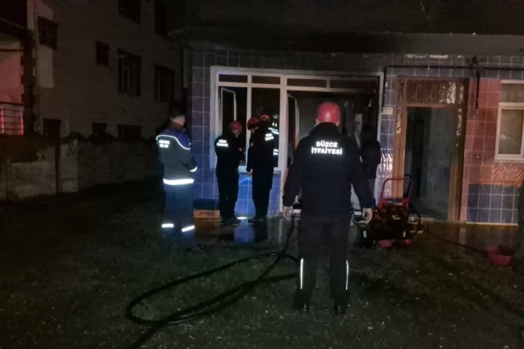 Düzce merkeze bağlı Aziziye Mahallesi'nde 3 katlı bir binanın giriş katında İ. A. isimli şahıs ısınmak için yaktığı ateşten sıçrayan kıvılcımlar yangına neden oldu. Daire oturulamaz hale gelirken çıkan yangın, itfaiye ekiplerinin hızlı müdahalesiyle kontrol altına alındı.