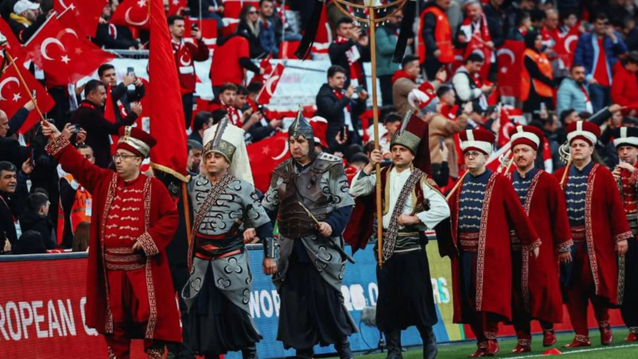 Mücadele öncesinde stadyum hoparlörlerinden yükselen ezgilerin yerini canlı Mehter Takımı performansı aldı. Geleneksel kıyafetleri ve heybetli duruşlarıyla sahaya giriş yapan mehteran bölüğü, çaldığı marşlarla Türk taraftarların enerjisini en üst seviyeye taşıdı. Isınma hareketleri için sahaya çıkmaya hazırlanan Milli futbolcularımıza büyük moral olan bu gösteri, rakip Romanya üzerinde de psikolojik bir baskı oluşturdu.