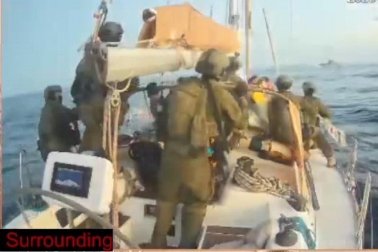 İsrail ablukasını kırmak ve insani yardım ulaştırmak amacıyla Gazze'ye doğru ilerleyen Küresel Sumud Filosu'ndaki bir tekneye İsrail askerleri tarafından yapılan baskın anı kameraya yansıdı.