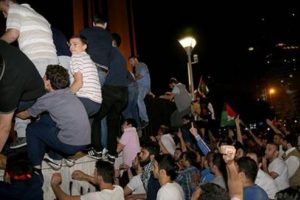 Başkonsolosluğun bulunduğu plazanın önünde protestolarını sürdüren kalabalıktan bazı kişiler, plazanın duvarlarına tırmanarak, binanın bahçesine girdi.
