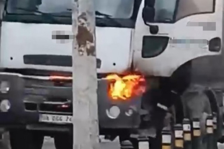 İstanbul Küçükçekmece'de bir beton kamyonu birden yanmaya başladı. Yanan kamyona çevrede bulunan vatandaşlar ve esnaf müdahalesi ile söndürülürken, kamyondan yükselen alevler cep telefonu kamerasına yansıdı.