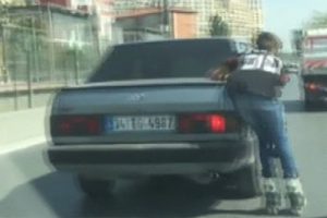 Sultangazi Habipler yolunda patenli bir genç, hem kendi canını hiçe saydı hem de trafiği tehlikeye attı. Akan trafikte, bazı sürücülerin verdiği tepkiye aldırmayan genç, bir araca tutunarak pateniyle seyretti. Gencin, bir süre sonra tutunduğu otomobili aniden bırakarak sağ şeride geçtiği görüldü. Bu tehlikeli oyun, başka bir araçtaki vatandaş tarafından cep telefonu kamerasıyla görüntülendi.