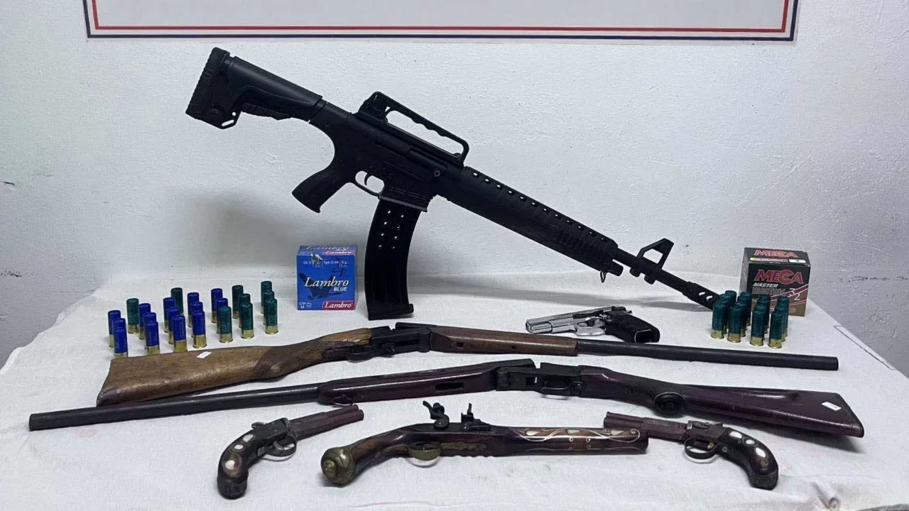 Şüpheli B.T. isimli şahsa ait olduğu belirlenen beş ayrı adreste gerçekleştirilen eş zamanlı aramalarda jandarma ekipleri tarafından,3 Adet tarihi eser olduğu değerlendirilen çakmaklı tabanca,1 Adet kurusıkı tabanca,3 Adet av tüfeği,39 Adet av tüfeği fişeği ele geçirildi.