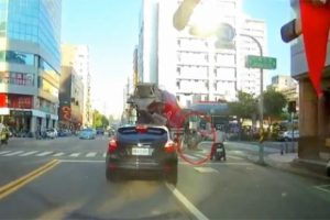 Tayvan'da engelli adamın kullandığı akülü araç, sağa dönüş yapan çimento kamyonunun altında kaldı.