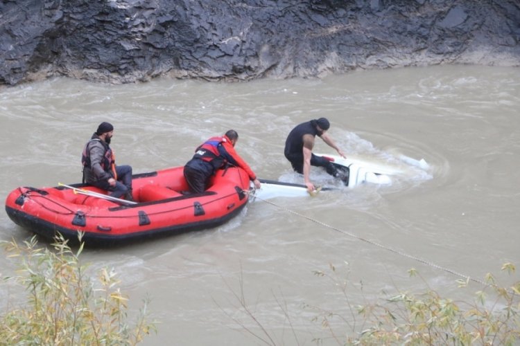Bu sırada kontrolün kaybolduğu kamyonet, yaklaşık 200 metre yükseklikten Zap Suyu'na yuvarlandı.