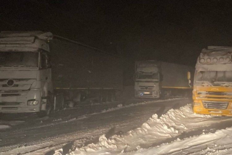 Doğubayazıt ile Çaldıran ilçelerini birbirine bağlayan Tendürek geçidinin 2 bin 400 rakımlı Somkaya köyü mevkisinde olumsuz hava koşulları nedeniyle çok sayıda TIR yolda kaldı.