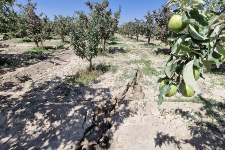 Karaman'da bir elma bahçesinde fay hattını hatırlatan 100 metre uzunluğunda yarık oluştu. Oluşan yarık ise elma bahçesinin sahibi ile çevrede oturan vatandaşları korkuttu.