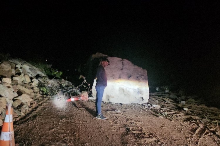 Kayanın düştüğü alanda araç bulunmaması ihtimal bir faciayı önlerken, yol kısa süreliğine ulaşıma kapandı.