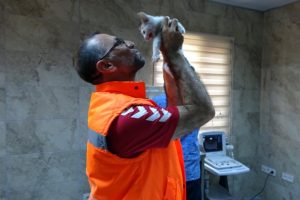Belediye işçisi Metin Keskin, hayatını kurtardığı yavru kedinin durumunu görmek için bakımevine gitti. Kurtardığı yavru kedinin sağlık durumunun iyi olduğunu gören Keskin, duygusal anlar yaşadı.