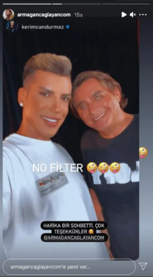 Filtre yüzünden bambaşka bir hale bürünen Armağan Çağlayan ise gündem olan kareyi "No filter" diyerek paylaştı ve dalga geçti.