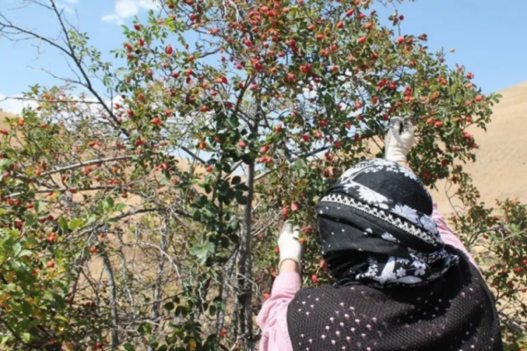 Erzincan'da kış mevsiminin yaklaşmasıyla birlikte yöre halkı kuşburnu mesaisine hız verdi. Doğal şifa kaynağı olarak bilinen kuşburnu, köylü kadınlar tarafından dikenli dallar arasından özenle toplanıyor.