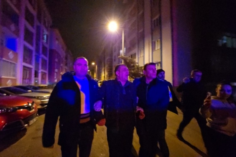 Polis ekipleri, çelik yelek giyerek çevrede güvenlik önlemi aldı. Yapılan çağrılar üzerine Murat K., tüfekteki fişekleri apartman bahçesine atarak teslim olacağını bildirdi. Şüpheli, Asayiş Şube Müdürlüğü ekiplerince suç aletiyle birlikte gözaltına alındı. Apartman çıkışında polis eşliğinde ekip aracına bindirilen Murat K'in, "Polislere ateş etmedim. Kapıma geldi dayandı. Polisi aradım, gelmeyince ben de vurdum" şeklindeki sözleri dikkat çekti.