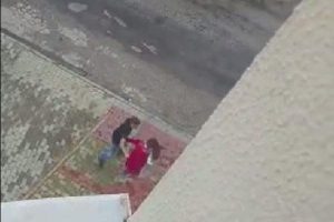 Kameraya yansıyan görüntülerde, bir adamın kucağında çocuk taşıyan kadına vurduğu görülüyor. Kendisine şiddet uygulayan ve kocası olduğu öğrenilen kişiden kaçmaya çalışan kadının "Ne olur yardım edin" diye bağırdığı görüntülerde ayrıca bebeğin de ağlama sesi duyuluyor.