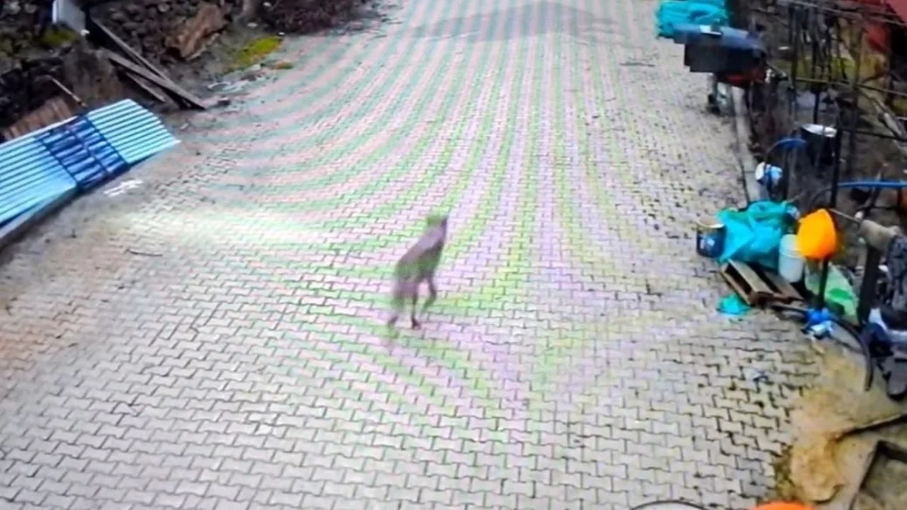 Adana'nın Feke ilçesinde bir kurt, yiyecek bulmak için yerleşim alanına inerek sokak aralarında dolaştı ve bir evin bahçesine kadar yaklaştı. O anlar güvenlik kamerası tarafından kaydedildi.