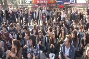 Pankart da açan grup, 'Berkin'in hesabı sorulacak', 'Berkin Elvan ölümsüzdür', 'Unutma Berkin, liseliler burada', 'İşte burası Berkin Elvan Meydanı', 'Çal çal nereye kadar, bitti buraya kadar' şeklinde sloganlar attı. Meydanda kısa bir süre oturma eylemi de yapan grup, daha sonra basın açıklaması yaptı.