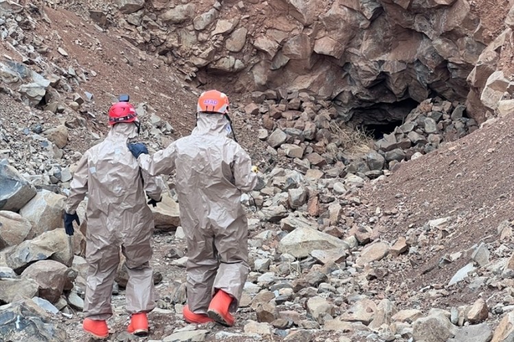 Ekipler, zehirli gaza karşı özel kıyafet giyerek, ölçüm cihazıyla mağarada inceleme yaptı.