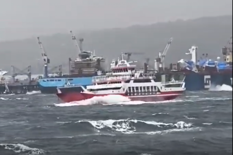 Bugün Marmara Denizi'nde çıkan fırtına nedeniyle Eskihisar - Yalova arasında yolcu taşımacılığı yapan feribotların dalgaların arasında ilermekte güçlük yaşadığı ve yoğun bir şekilde sallandığı görüldü.