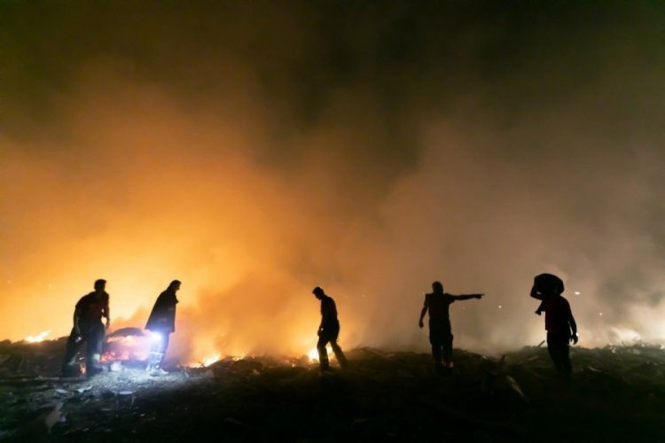 Mersin'de atık maddelerin bulunduğu alanda yangın çıktı, ekipler söndürmek için sabaha kadar mücadele edip kontrol altına aldı.