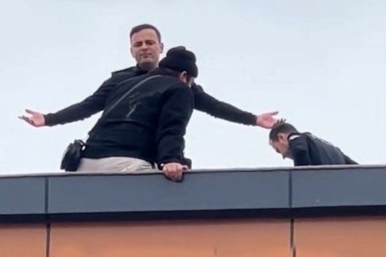 Tekirdağ Çorlu'da çalıştığı rezidansın çatısına çıkan kapıcı görevlisinin yüksekten atlama girişimini Çorlu Sabahattin Ergin Polis Merkezi Amiri Başkomiser Tufan Arıkoğulları önledi.