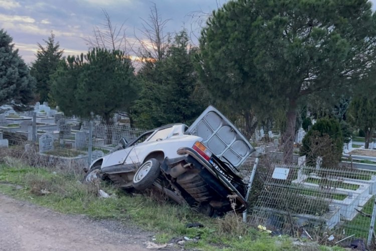 Tekirdağ Çorlu'da yoldan çıkan bir otomobil, yeni mezarlığa daldı. Kaza mahallinden firar edip tekrar olay yerine dönen sürücü alkollü çıktı. "Kaza sonrası sizi olay yerinde göremedik" diyen muhabirin sorusuna gülümseyerek cevap veren sürücü, "Yoktum, başka yere gittim" dedi.