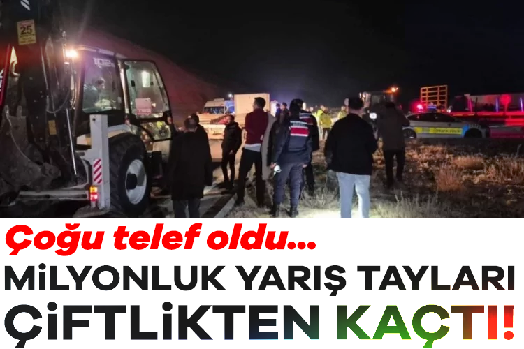 Malatya'nın Akçadağ ilçesinde safkan Arap atlarının yetiştirildiği Sultansuyu Tarım İşletmesi'nden kaçarak karayoluna çıkan 8 yarış tayı araçların çarpması sonucu öldü, 2 tay yaralandı. Çiftlikten kaçan bazı tayların ise bulunması için bölgede arama çalışması başlatılırken, atlara çarpan araçlarda bulunan 2 kişi de yaralandı.