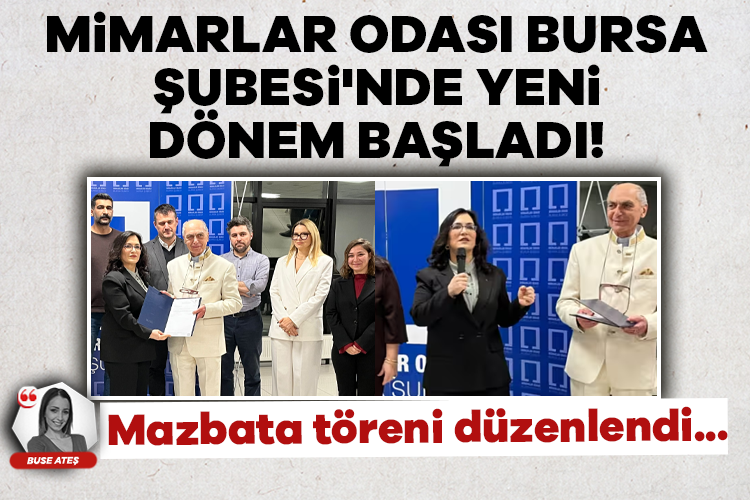 TMMOB Mimarlar Odası Bursa Şubesi'nin 21. Olağan Genel Kurulu'nda seçilen yeni yönetim ve kurulların mazbataları düzenlenen törenle teslim edildi.