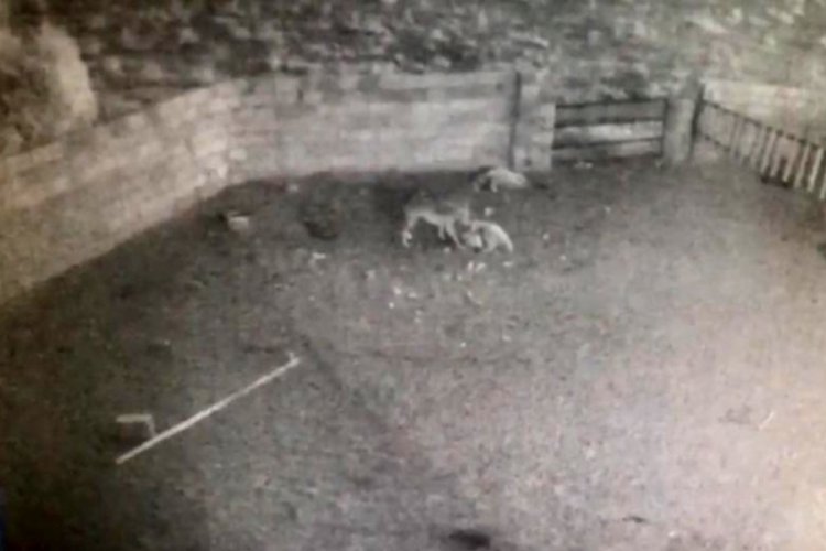 Nevşehir'de aç kalan kurt, girdiği ağıldaki 2 koyunu telef etti. O anlar güvenlik kameralarına yansıdı.