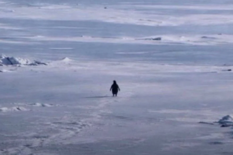 Videoda, Adélie penguenlerinden oluşan bir koloni beslenmek için okyanusa doğru ilerlerken, tek bir penguen sürüden ayrılarak tamamen ters yönde yürümeyi seçiyor.