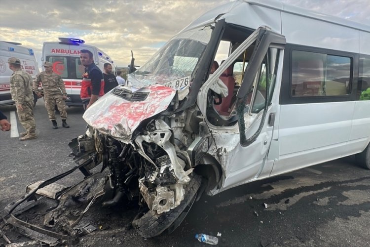 Erciş-Van kara yolunun Organize Sanayi Bölgesi Kavşağı'nda sürücülerinin ismi öğrenilemeyen 49 AAZ 631 plakalı tır ile 65 AAG 876 plakalı öğrenci servisi çarpıştı.