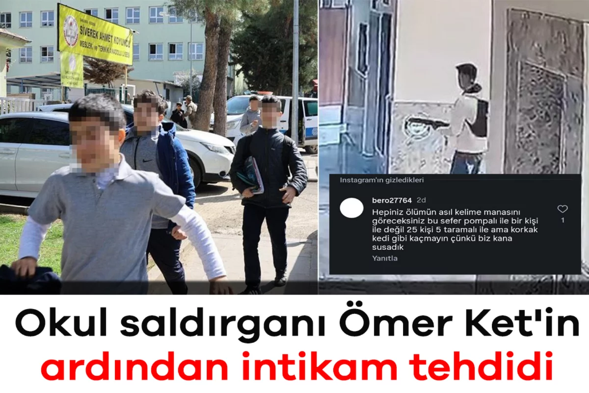 Şanlıurfa Siverek'te tüfekle okulu basıp 16 kişiyi yaralayan ve ardından yaşamına son veren Ömer Ket'in ardından tehdit paylaşımları yapıldı. Söz konusu paylaşımlarda, "Aslan abim senin yapamadığın şeyi biz yapacağız" ve "Kanı yerde kalmayacak, beklesinler" gibi ifadeler yer aldığı görüldü.