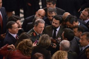 23 Nisan Ulusal Egemenlik ve Çocuk Bayramı ile TBMM'nin açılışının 95. yılı dolayısıyla Meclis'te bir resepsiyon düzenlendi. Resepsiyona katılan Orgeneral Akar, gazetecilere açıklamalarda bulundu. Kara Kuvvetleri olarak hudut güvenliğiyle terörle mücadele konuları dışında, takriben 2 yıldan beri Genelkurmay Başkanlığının direktifleri doğrultusunda, "Türk Silahlı Kuvvetleri 33" adlı kurumsal bir proje çalışması yürüttüklerini açıkladı. Akar, "Bu çok önemli bir çalışma, bütün kara kuvvetlerinin mensupları bu çalışmaya katıldılar. Şu ana kadar yüz yüze yapılan çalışmalar, mektupla, resmi yazılarla gelen yazılar, elektronik olarak 20 binin üzerinde teklif görevi geldi bizim projelerimize" diye konuştu.