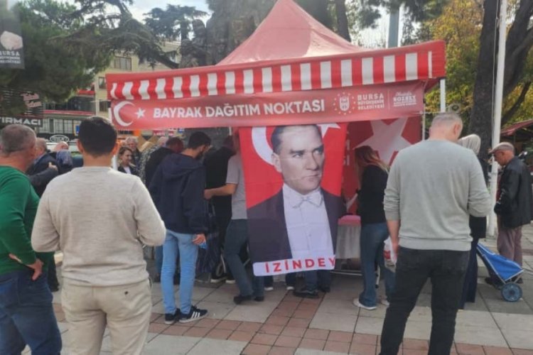 Bursa'nın Orhangazi ilçesinde Cumhuriyet Bayramı kutlamaları kapsamında Bursa Büyükşehir Belediyesi tarafından kurulan stand ile ilçe halkına üzerinde Gazi Mustafa Kemal Atatürk'ün olduğu binlerce Türk bayrağı dağıtıldı.