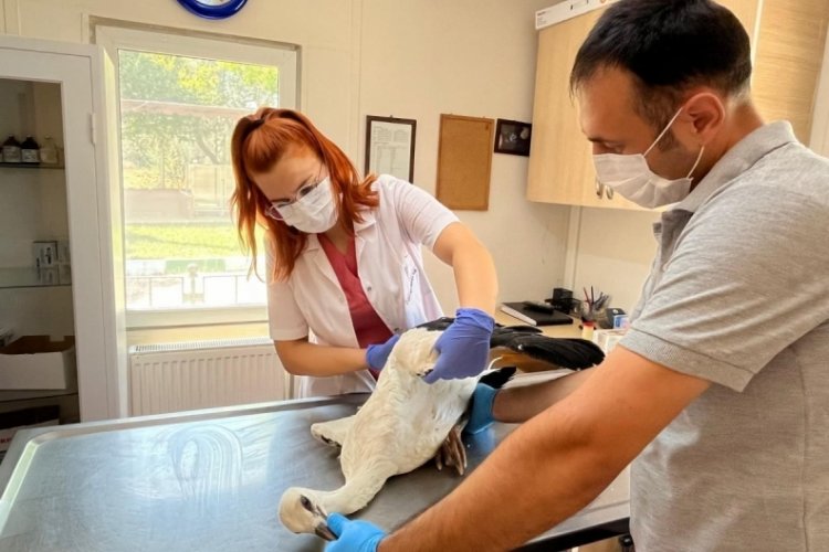 Caminin içerisinde bulunan leyleğin yanına giden ekipler, leyleği yakalayarak ilk müdahaleyi orada yaptı. Ekipler, sağlık durumu hakkında detaylı bilgi sahibi olmak ve gerekli muayeneyi uygulamak adına yaralı leyleği Sahipsiz Hayvanlar Doğal Yaşam ve Tedavi Merkezi'ne götürdü. Veteriner hekim tarafından sağlık kontrolü yapılan ve röntgeni çekilen leyleğin, kanadında darbeye dayalı yaralanma olduğu ve bu yüzden uçamadığı tespit edildi. Yapılan medikal tedavinin ardında birkaç gün içerisinde sağlığına kavuşması beklenen leylek, Büyükşehir Belediyesi Hayvanat Bahçesi'ne teslim edildi.