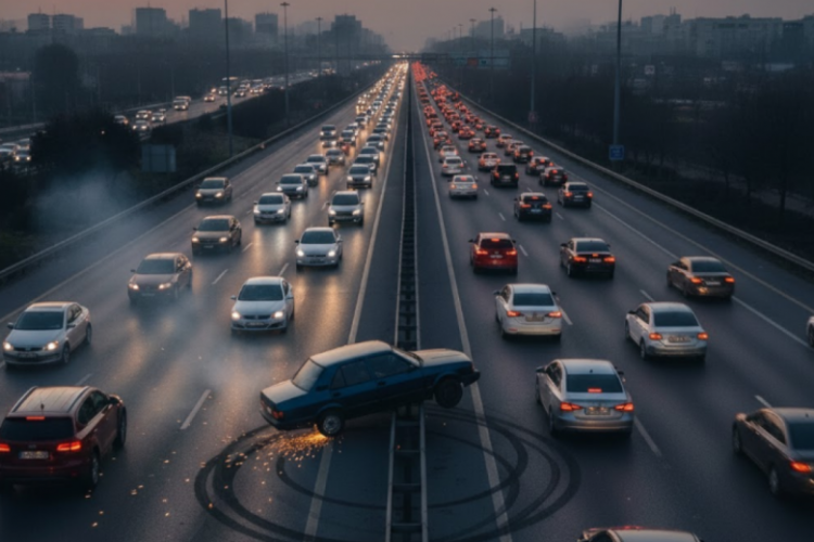 Polis, sürücünün dikkatsizliğinin neredeyse zincirleme kazaya yol açabileceğini belirtti.