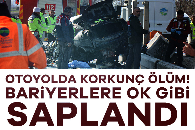 Kuzey Marmara Otoyolu Sakarya geçişinde kontrolden çıkan otomobili, bariyerlere çarparak gişelere ok gibi saplandı. Alev alan otomobilde sürücü hayatını kaybetti.