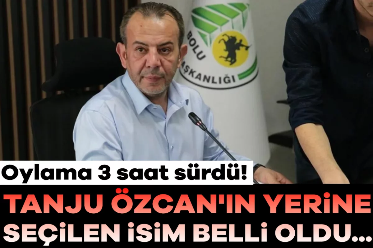 Bolu'da yürütülen soruşturma kapsamında tutuklanan ve İçişleri Bakanlığı'nca görevden uzaklaştırılan Belediye Başkanı Tanju Özcan'ın yerine gelen isim belli oldu. 3. tur oylama sonucunda, CHP'nin adayı Bolu Belediye Başkan Yardımcısı Mehmet Tuna Özcan başkanvekili olarak seçildi.