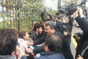 Eylem mahalline getirilen demir kesme makası ile bağlı bulundukları zincirleri kesilen protestocular, polisler tarafından yaka paça gözaltına alındı. Üçü bayan 5 eylemci, polis aracına bindirilerek karakola götürüldü.