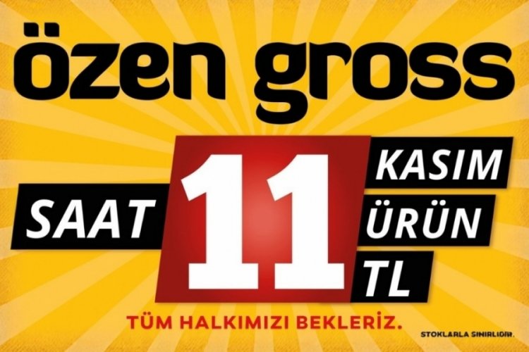 Bursa ve Kütahya'da perakende sektörünün öncü markalarından Özen Gross, 11 Kasım'a özel düzenlediği kampanya ile müşterilerine büyük bir sürpriz hazırladı. Şirketin tüm şubelerinde 11 Kasım saat 11.00'de başlayacak özel etkinlikte, 11 seçili ürün sadece 11 TL'den satışa sunulacak.