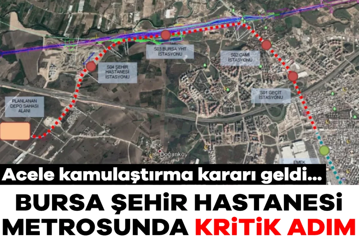 Resmi Gazete'de 19 Mart Perşembe günü Cumhurbaşkanı Erdoğan'ın imzasıyla yayımlanan kararnameye göre Bursa Şehir Hastanesi Metro Hattı projesi kapsamında acele kamulaştırma kararı alındı.