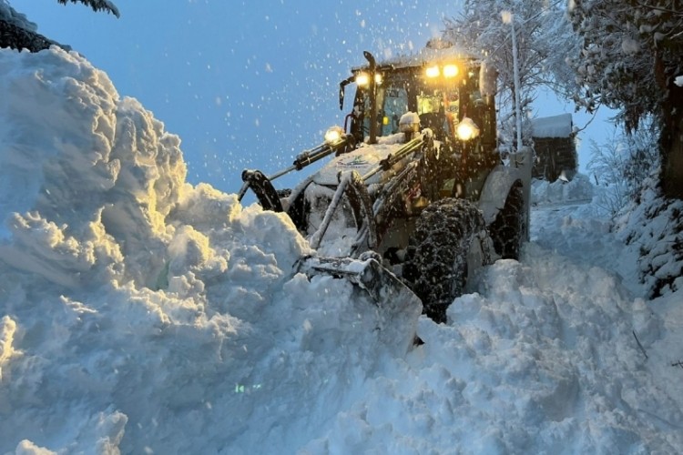 Rize'de kar yağışı nedeniyle 63 köy yolu ulaşıma kapanırken, Rize İl Özel İdaresi tarafından 124 personelden oluşan ekiple karlı yolları açma çalışmaları sürüyor.
