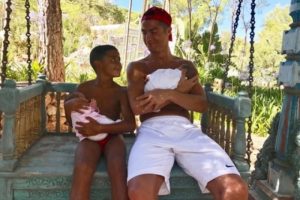Ronaldo, ikizlerinin daha önce paylaştığı fotoğrafının altına, "Hayatımın iki aşkını kucaklıyor olabilmekten mutluyum" yorumunu yazmıştı.
