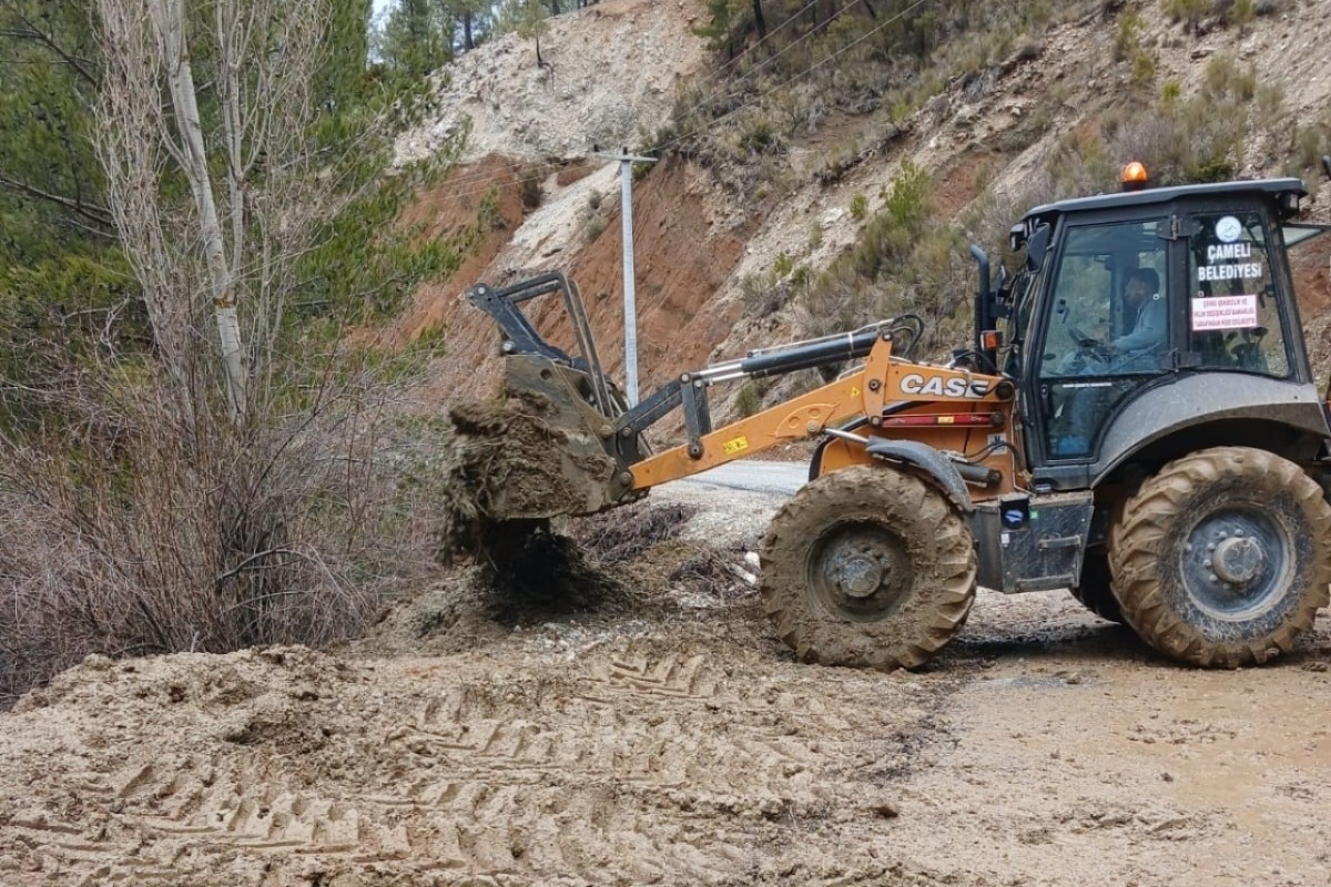 Çameli'nde etkili olan yoğun yağışların ardından meydana gelen toprak kaymaları ve su taşkınlarına karşı Çameli Belediyesi ekipleri mahallelerde aralıksız çalışma başlattı.