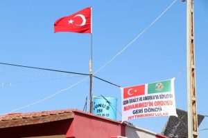 Hatay'ın sınırındaki Davutpaşa Mahallesi'nde vatandaşlar Zeytin Dalı Harekatı'nı yürüten Mehmetçik'e destek olmak amacıyla çok anlamlı bir pankart astı.