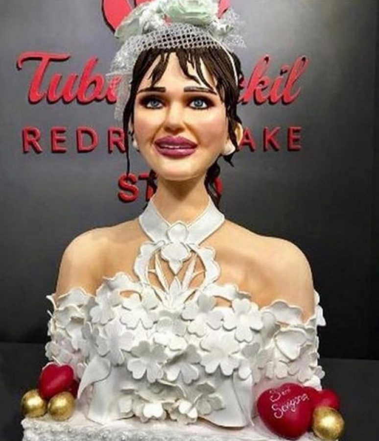 EŞİNİN PASTADAN BÜSTÜNÜ YAPTIRDI