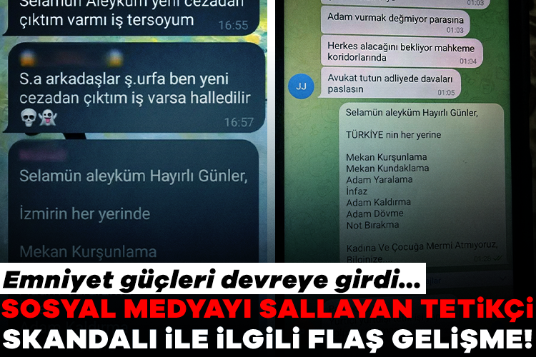 İzmir'de, sanal medya üzerinden 'tetikçi' ilanı verildiği ihbarı üzerine Kemalpaşa İlçe Emniyet Müdürlüğü ekipleri inceleme başlattı. Yapılan çalışmalar sonucunda, ilanı veren kişinin kimliğinin R.S.T. olduğu tespit edildi. R.S.T., polis ekiplerinin çalışması sonucu gözaltına alındı. Şüphelinin emniyetteki işlemlerinin ardından adliyeye sevk edileceği öğrenildi.