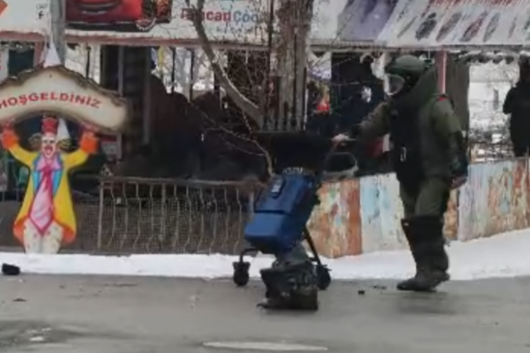 Iğdır'da çocuk oyun işletmesinin karşısında bırakılan şüpheli çanta, bomba imha uzmanı tarafından fünye ile kontrollü şekilde patlatıldı. Çantanın içinden kıyafetler çıktı.