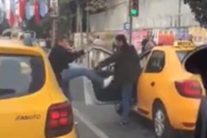 İddiaya göre, semtin en işlek caddesinde 2 taksi şoförü yolcu alma nedeniyle tartışmaya başladı. Tartışmanın ardından yol ortasında araçlarından inen sürücüler, güpegündüz tekme ve yumruklarla birbirine girdi. Saniyelerce kavga eden sürücüleri, çevredeki vatandaşlar araya girerek ayırdı.