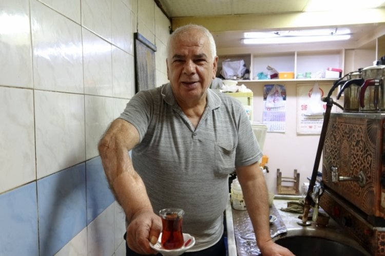 Gaziantep'te 15 yaşındayken çay ocağında işe başlayan 65 yaşındaki Yılmaz Eley, tarihi Bakırcılar Çarşısı'nda 50 yıldır mesleğini severek sürdürüyor.