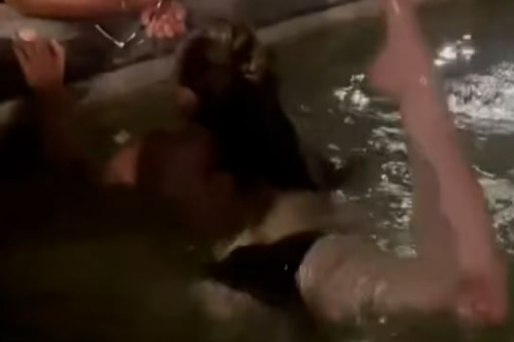 Görüntülerde kadının, havuzun kenarında oturan diğer insanlara İngilizce olarak "Siz de gelecek misiniz?" diye sorduğu duyuluyor. Ancak bulanık ve muhtemelen kirli suya rağmen, kimsenin ona katılmadığı görülüyor.